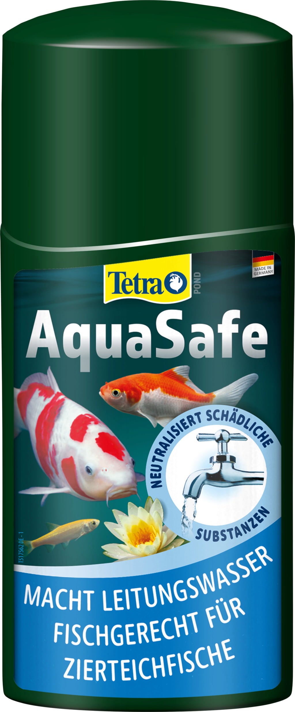 Tetra Pond AquaSafe är ett vattenförbättringsmedel för kranvatten och är lämpligt för användning i trädgårdsdammar.