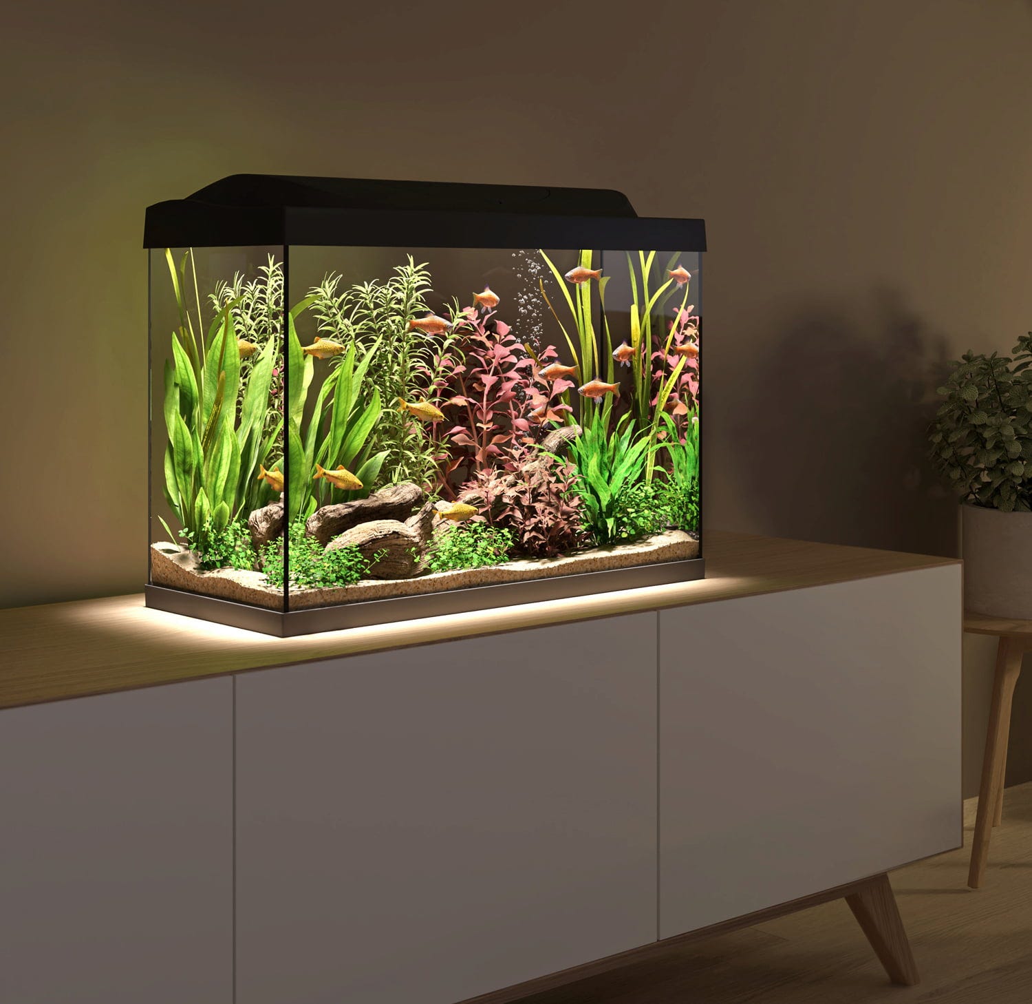 Detta praktiska startpaket innehåller allt du behöver för att komma igång med ditt nya akvarium direkt. Själva centrumet är ett stabilt akvarium i högkvalitativt floatglas med 6 mm tjocka glasrutor. Locket är inte bara stilrent - det är också riktigt praktiskt, med en integrerad matlucka som gör det enkelt att mata dina fiskar varje dag.