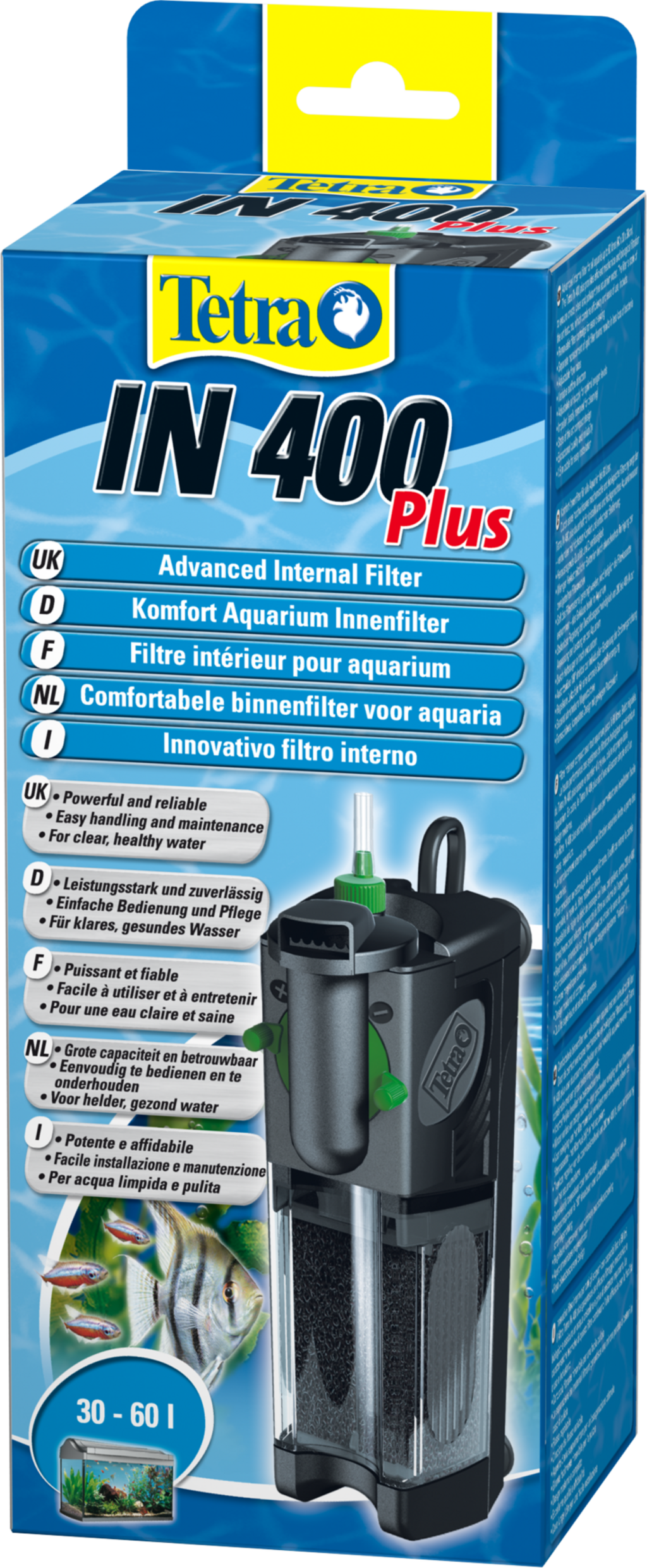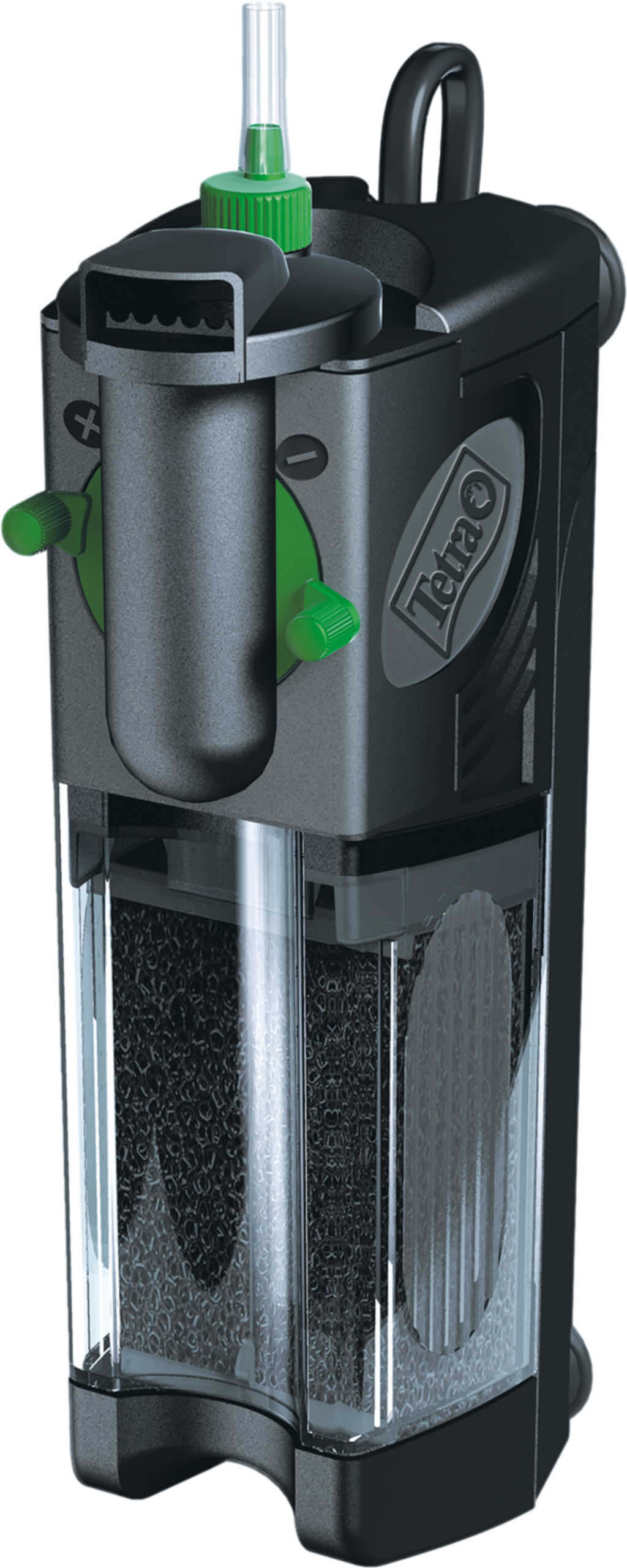 Med Tetra IN plus-inomhusfiltret säkerställer du inte bara en optimal behandling av akvarievattnet, du reglerar också syrehalten och kan rengöra det utan att behöva lyfta upp det helt ur vattnet!
