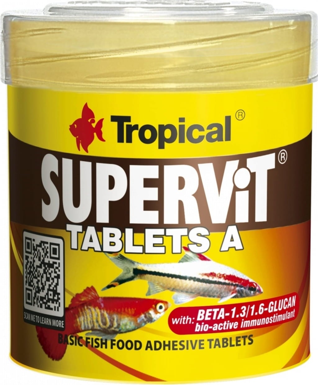 SUPERVIT TABLETS A är ett helfoder med flera ingredienser i form av självhäftande tabletter, tillverkade av naturliga ingredienser av absolut hög kvalitet. Tabletterna är lämpliga för daglig utfodring av alla akvariefiskar, vattensköldpaddor och sniglar. De rekommenderas särskilt för utfodring av växande ungfiskar.